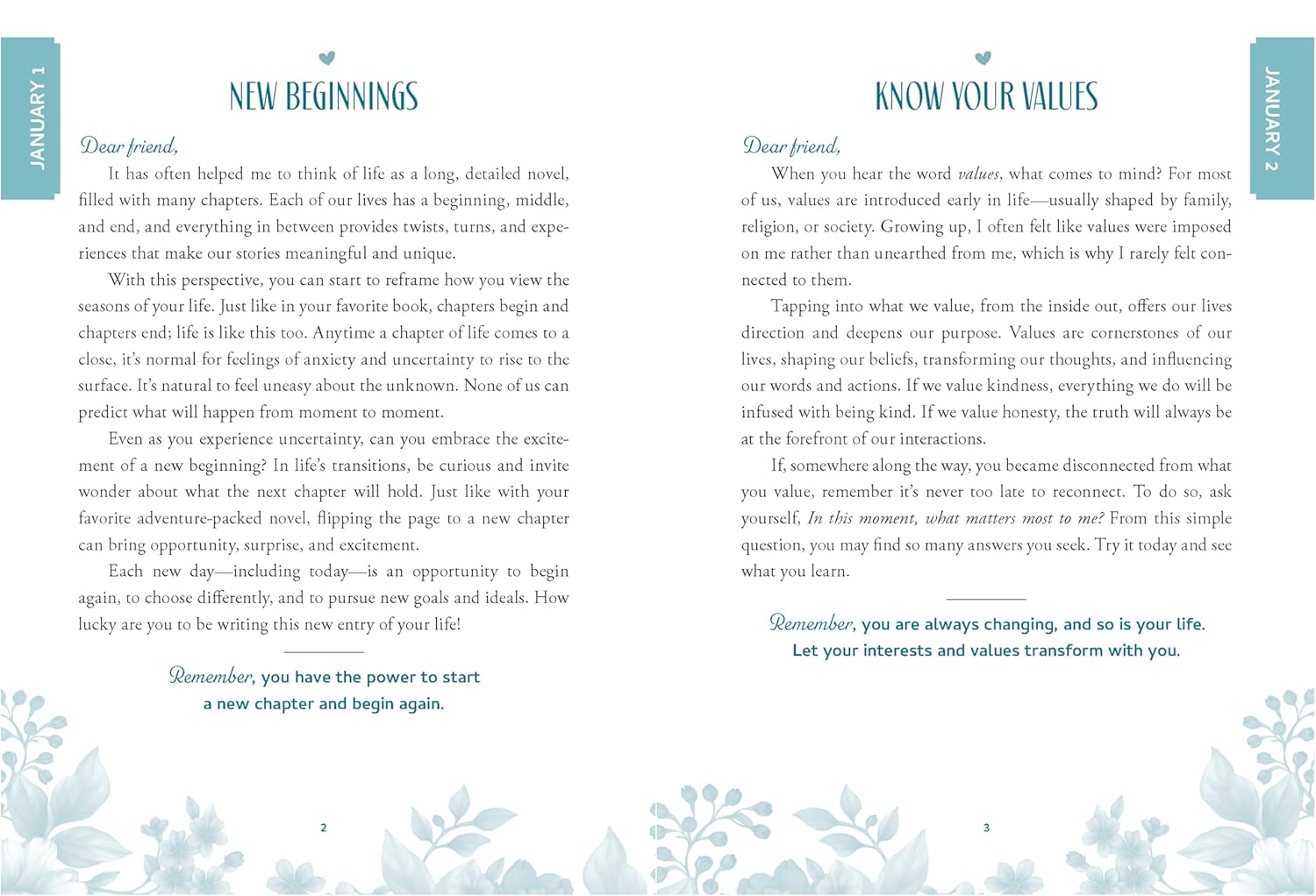 USA TODAY BESTSELLER INTERNATIONAL BESTSELLER Experience a year of introspection, transformation, and personal growth as you connect to the desires of your heart and live in alignment with them each and every day. These 365 profound, heartfelt reflections from Michelle Maros (founder of Peaceful Mind Peaceful Life and cohost of the widely loved podcast, Life Happens with Barb & Michelle) offer the inspiration you seek as you navigate the ebbs and flows of life.